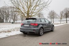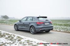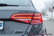 L’esthétique de l’arrière suit la même logique. Si la forme générale des phares est dans la droite lignée de ce que fait Audi depuis plus de dix ans, force est de constater que la mise en relief des feux stop, en forme de G, est des plus réussie. Le spoiler d’hayon encadre gracieusement la lunette arrière et complète de manière splendide la ligne de pavillon. La double sortie d’échappement, sans être incroyable, fait son petit effet. On peut relever enfin que les belles jantes 19 pouces de notre modèle d’essai sont en parfaite harmonie avec l’allure générale de la compacte.