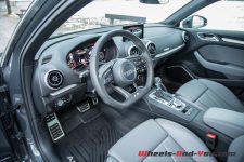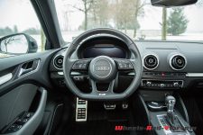 Les amateurs de course automobile comme les téléspectateurs n’ont pas pu échapper au fameux slogan de la firme d’Ingolstadt : « Vorsprung durch Technik », l’avance par la technologie. Cette A3 en est la parfaite illustration. La technologie est omniprésente et ce qui frappe en premier, c’est l’armada d’assistances au conducteur : le signal de présence dans l’angle mort, le correcteur de trajectoire, l’aide au freinage, la détection de trafic latéral en marche arrière, le virtual cockpit, etc…