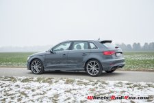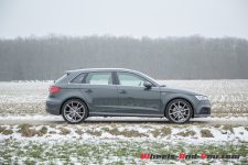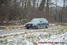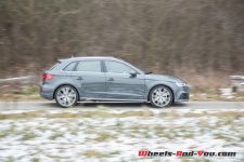 Le moins que l’on puisse dire, c’est que la belle compacte ne manque pas de jus ! Elle est nerveuse et répond aux sollicitations de l’accélérateur sans rechigner. Cependant, ce débordement de vitalité a ses inconvénients. Etant conduite en plein mois de janvier, notre A3 est chaussée, très logiquement, de pneus hiver, des Continental TS 850 P. Au moindre démarrage un peu trop franc ou lors d’une relance appuyée, les gommes décrochent et dérapent sans le moindre avertissement. Il faut donc, par temps froid, savoir se montrer tendre avec la demoiselle.