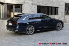 Par rapport à la génération précédente, la voiture s’allonge de près de 6 cm pour atteindre les 5 mètres. La largeur reste pratiquement la même à 1.875 mètres et la hauteur perd 30 mm à 1.44 mètres. Avec 3mm de plus que la version qu’elle remplace, l’empattement reste pratiquement inchangé à 2.93 mètres.
