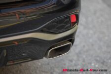 L’assise est très bonne et le confort des sièges sans reproche dans notre voiture combinant le tissu « Dinamica » et le cuir avec surpiqures rouges. Les suspensions proposent un excellent filtrage des aspérités. En forçant l’allure sur route très déformée, le comportement est sain et il est très facile de garder sa ligne. Les assistants électroniques limitent le couple de manière à ne pas avoir de souci de motricité sur route détrempée. Je constate un comportement neutre et serein en toutes circonstances qui correspond bien au segment de la voiture. La boîte est sans histoire avec ses modes « D » et « S » et les palettes derrière le volant permettent des passages de rapport manuels.