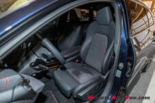 Notre véhicule de test dispose de l’intérieur optionnel « S » qui comprend des sièges en cuir et tissu « Dinamica ». Le tout est de bonne facture et confortable.