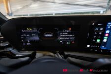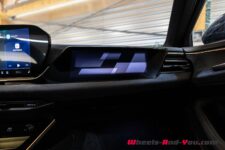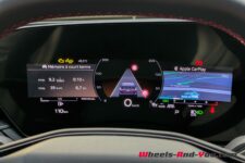 L’environnement software est bien au point, les deux écrans et l’affichage tête haute sont de très bonne facture, avec une intégration entre les différents systèmes très bien réalisée. Je note par exemple que la carte du guidage CarPlay s’affiche non seulement sur l’écran central mais également derrière le volant.