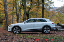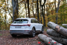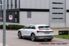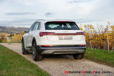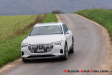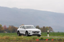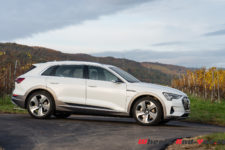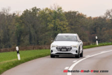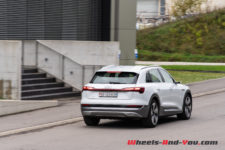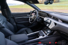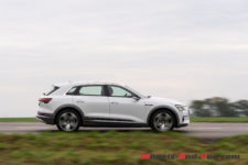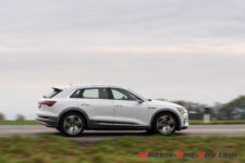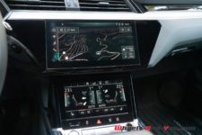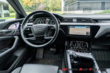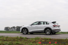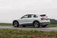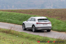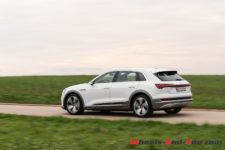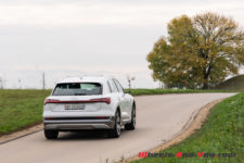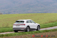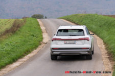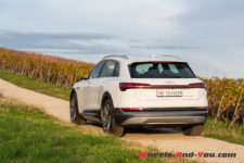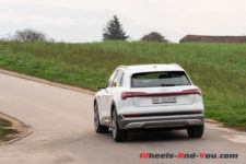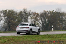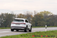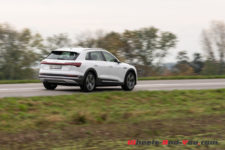 Seul côté joueur de la voiture avec le mode Dynamic et les assistances de conduite désactivées, la prépondérance de puissance sur l’arrière permet de s’amuser un peu en plaçant l’arrière en dérive, attitude pour le moins surprenante chez Audi dont la production privilégie toujours le sous-virage. Mais avec le poids de l’engin, je suis vite rappelé à l’ordre par la jauge d’autonomie qui fond à vue d’œil.