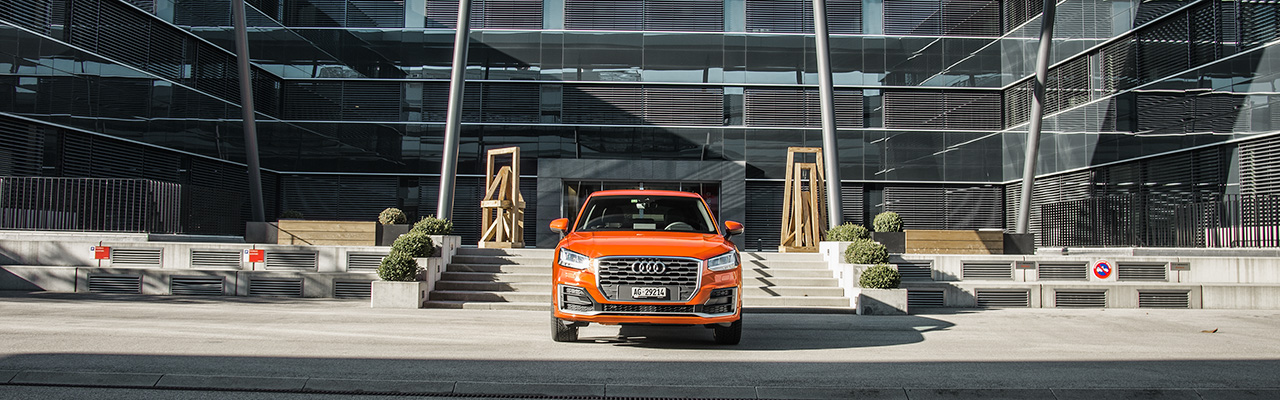 Le moins que l’on puisse dire c’est que Audi Suisse s’est lâché sur la configuration de ce Q2, notamment pour la couleur. Alors qu’habituellement la marque nous gratifie de différentes nuances de gris, voire de bleu pour les voitures de presse, là notre petit crossover arbore une sublime teinte « Orange corail métal ». En combinaison avec le pack S Line et les jantes 19 pouces « Audi Sport style 5 branches en hélice », il en jette ce Q2 ! Bien évidemment sa palette sait se montrer beaucoup plus classique, il ne faudrait pas trop choquer. Reste que le choix est plutôt contenu pour une Audi et le catalogue du modèle met en avant les couleurs flashy. Voilà un bon exemple des ambitions du Q2 pour charmer une nouvelle catégorie de clients.
