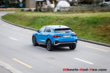 Globalement, ce Q3 Sportback est réussi et cette ligne le rend beaucoup plus attrayant que sa version classique même si, au niveau du volume de chargement, il perd une centaine de litres (principalement en hauteur). Mieux je suis surpris par les qualités dynamiques de ce véhicule qui affiche tout de même 1.7 tonnes à vide avec un centre de gravité élevé.