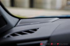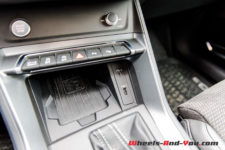 La qualité des matériaux ainsi que l’agencement sont irréprochables. J’ai beaucoup aimé l’insère en alcantara (option à CHF 510.-) sur la planche de bord. Autre détail immédiatement visible, c’est l’espace pour glisser son téléphone portable sur un support antidérapant et rechargeable par induction.