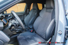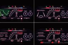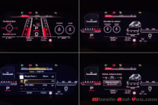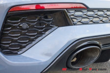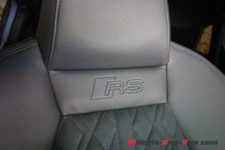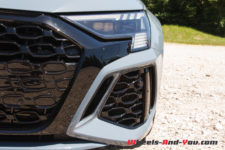 Les magnifiques sièges baquets enveloppants mi-cuir/mi-alcantara reprenant le motif en nid d’abeille de la face avant sont très confortables. En face des yeux, le Virtual Cockpit sur un écran de 12,3 pouces offre de nombreux modes d’affichage dont un nouveau mode RS Runway avec l’affichage des G en quatre dimensions ainsi que le pourcentage de puissance et de couple utilisé. L’écran central, lui aussi de 12,3 pouces, permet de contrôler toutes les fonctions de la voiture. Il faut un peu de temps pour tout configurer à « sa sauce ». L’ensemble dispose d’une sone Bang & Olufsen qui propose un rendu acoustique exceptionnel.