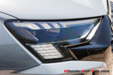 De discrètes ouïes « barrettes » apparaissent derrières les passages de roues afin de mieux ventiler les freins. Les phares Matrix LEDs aux design spéciaux offrent une nouvelle signature en damier avec une originale séquence de bienvenue qui lui est spécifique. Ce profil tout en subtiles lignes tendues et arrêtes prononcées renforce sa sportivité. Sa couleur Gris Kemora qui tire vers un bleu est légèrement métallisée avec de subtiles reflets violet brillant au soleil. Cela change des gris Nar-do et lui va super bien. Quelques touches de noir laqué sur les rétroviseurs, bas de caisse ou latérales entre les portes mettent en valeur la ligne générale.