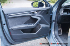 Esthétiquement elle évolue en bien, cette RS 3, avec cette calandre Single Frame en gros nid d’abeille, des voies élargies de 33 mm et, en conséquence, un bouclier et des ailes qui prennent de l’embonpoint. Sans être bodybuildée, cette RS 3 est bien campée sur ses superbes jantes de 19 pouces à 10 branches en Y et n’est pas sans me rappeler les premières Quattro des années 80. Voir sa face avant agressive à souhait dans son rétroviseur vous dit que vous que vous avez à faire à du « lourd » et qu’il est préférable de se rabattre.