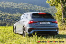 Par ailleurs, les finitions et le confort sont au rendez-vous. Les technologies présentes font de cette Audi RS 3 l’une des plus sûres de sa catégorie mais aussi la plus rapide. Une vraie sportive capable d’évoluer aussi bien en ville, sur route et autoroute, que sur circuit. Si vous souhaitez personnaliser à souhait votre RS 3, il n’y aura qu’à piocher dans la longue liste d’options et, croyez-moi, vous serez bien servi. Mais attention, l’addition sera vite salée, exemple notre voiture d’essai qui dépasse les CHF 100’000.-.