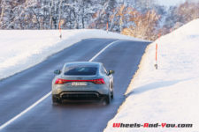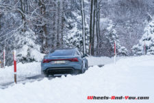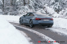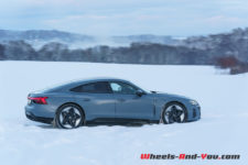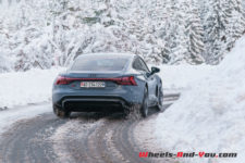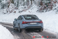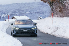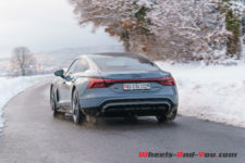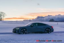 Cependant, je trouve qu’on ressent vraiment le poids élevé de la voiture. Les suspensions actives contrecarrent pourtant bien le roulis mais sur route mouillée et plus encore sur la neige, l’inertie de l’auto est importante. Sur la neige, il faut faire particulièrement attention au freinage où le poids rallonge les distances de décélération. Corollaire positif, la stabilité de la voiture est excellente et les pertes d’adhérence sont progressives et ne surprennent pas. Sur le peu de chaussées sèches rencontrées durant mon essai, l’accélération est impressionnante, les 830 Nm catapultant cette RS e-tron GT en avant, en donnant l’impression de ne jamais vouloir faiblir.
