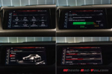 Audi a soigné l’aspect sonore, d’abord par une insonorisation poussée via des vitres spéciales, ensuite par le son synthétique, désormais obligatoire à basse vitesse, qui rappelle plutôt bien le son du typique 5 cylindres thermique de la marque.