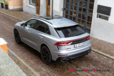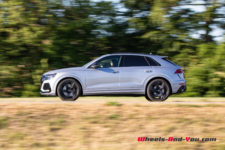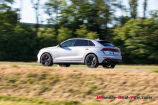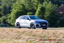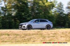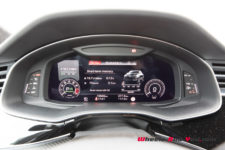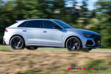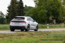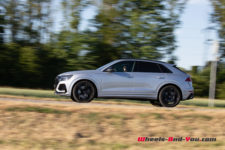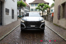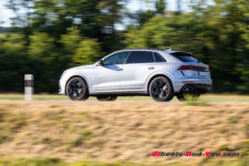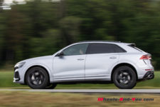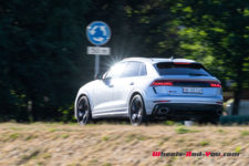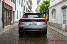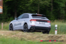 Même si ces mouvements de caisse peuvent être ludiques, ils ne sont pas toujours faciles à gérer. Configurée en l’état, une sortie sur un circuit révélera assez vite les limites de la voiture avec ses défauts au niveau du poids et du compromis réalisé sur les suspensions et le système de propulsion pour rendre le tout très civilisé. A l’inverse, je pense que le « Pack Dynamique RS Plus », facturé CHF 17’590.-, permettrait certainement d’améliorer ce comportement car au-delà des freins en céramique spécialement développés pour le Q8, il y a également une stabilisation active du roulis électromécanique et le différentiel « Sport Quattro ». Ce modèle d’essai n’est pas équipé de cette option mais le SUV du Nürburgring oui. Normalement, Audi limite éléctroniquement ses voitures à 250 km/h mais grâce à ce pack, le pilote passe brièvement les 300 km/h avant de planter sur les freins pour passer Hohenrain à moins de 100 km/h.
