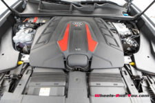 Résultat des courses, ce RS Q8 n’est pas seulement énorme mais il dégage aussi une présence bestiale au point que c’est impossible de passer inaperçu, y compris dans un parking aux places étroites car il faudra s’y reprendre à deux fois pour garer la bête.