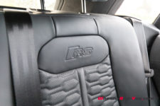 De toute évidence, l’engin en impose avec ses 5 mètres de long et 2 mètres de large, le tout campé sur des roues de 23 pouces. De plus, RS oblige, la voiture est bardée d’appendices et autres renflements pour rendre l’ensemble plus agressif. Les deux énormes sorties chromées ovales des pots d’échappement cachent en réalité deux pots de moindres importances, ça fait un peu « kéké » comme on dit chez nous.