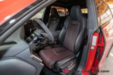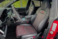 Notre modèle d’essai, qui arbore la teinte Chili Red avec les jantes optionnelles en 23 pouces, nous ravi l’œil d’entrée de jeu. Ce rouge est légèrement différent du Progressif Red de la dernière RS 3 essayée récemment.