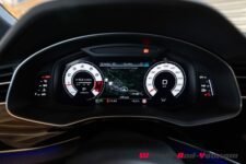 Ce n’est que lorsqu’il faut freiner brusquement qu’on se rappelle qu’on est au volant d’un véhicule de 2.3 tonnes. Heureusement, les freins carbone-céramique relèvent admirablement le défi. Grâce à la suspension pneumatique active, ce RS Q8 Performance s’affranchit des petites imperfections de la route même si le confort est toujours un peu raide. En conduite tranquille, le confort est celui d’un SUV haut de gamme raffiné mais même dans son réglage le plus souple, la suspension conserve une fermeté sous-jacente.