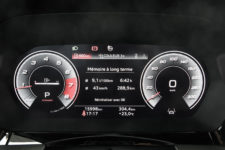 Au niveau de l’instrumentation, la marque propose désormais son classique « Virtual Cockpit » derrière le volant au travers d’un très lisible écran de 12.3″ fournit en standard (c’est assez rare pour être souligné). Au centre du tableau de bord, il y a aussi le MMI de 10.1″ qui permet d’accéder aux différentes fonctions du véhicule.