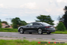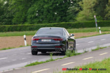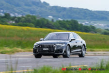 Mais ce qui me bluffe le plus dans cette S8, c’est sa suspension active préventive. Il y a certes encore quelques détails à peaufiner mais lorsque la technologie assimile parfaitement l’état de la route devant l’auto, c’est presque déconcertant. Je ne parle même pas de chaussées défoncées dont les imperfections sont gommées sans aucun souci mais plutôt des dos d’âne ; sans prendre garde à ces derniers, je me suis retourné à plusieurs reprises après en avoir passé, avec le sentiment qu’il n’y en avait pas eu tant l’amortissement les absorbe à merveille. Une expérience à vivre pour s’en rendre compte, pour laquelle je formule un grand bravo aux ingénieurs qui ont conçu le système.