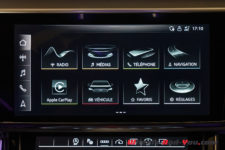 L’équipement est lui aussi très impressionnant. Mais attention, il fait vite grimper l’addition car même sur ce modèle haut de gamme, bon nombre de choses sont à cocher dans la liste des options. Peu adepte de la technologie à outrance et encore moins partisan du « tout tactile », j’ai beaucoup aimé les écrans tactiles avec fonction haptique qui renvoient un feeling de touché très plaisant. Autre accessoire hyper efficace, les phares Matrix dont l’éclairage est bluffant, un des meilleurs qu’il m’a été donné de tester. De surcroit, il se combine ici avec un assistant de vision nocturne (caméra thermique dont l’affichage apparaît entre les compteurs) et on ne se rend presque plus compte qu’on roule de nuit tant c’est performant.