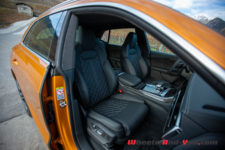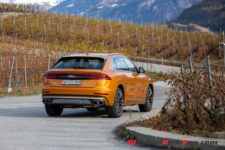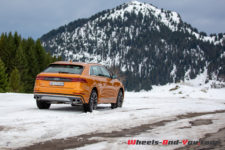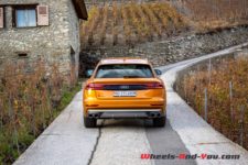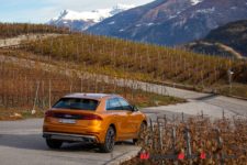 Au soulagement de la pédale de frein, le SQ8 se met immédiatement en mouvement, à la vitesse naturelle du premier rapport. Un filet de gaz et il s’ébroue de façon virile en passant rapidement la 2ème. Tel un félin, le SUV avance façon ninja dans la circulation, sauf qu’il est orange vif et gros comme une maison. Assisté des caméras à 360° et une bonne visibilité périphérique, on se fait un chemin sans trop se poser de question, en ville ou sur les petites routes viticoles du Valais.