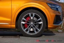 En poussant le rythme, le sous-virage apparaît en même temps que les premiers soupirs du freinage. Bien que les disques carbone céramique sont largement dimensionnés, à force de stopper plus de deux tonnes de façon répétée, ils signalent gentiment au conducteur qu’il est aux commandes d’un SUV, pas du coupé R8. Le SQ8 a beaucoup de ressources, mais face aux lois de la physique il ne peut pas éternellement lutter.