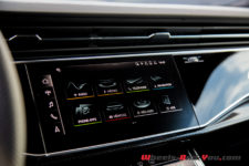 Cependant, Audi y a ajouté son style, avec un touché d’écran simulé très agréable. Même si l’on ne fait que presser une surface lisse, chaque action renvoie une vibration à la surface de l’écran pour matérialiser la confirmation de l’action demandée. Une activation du sens du toucher que j’adore. Audi a heureusement aussi gardé les pieds sur terre sans céder au tout digital, un set de boutons physiques reste à portée, comme par exemple pour le volume.