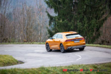 Calé à 120 km/h, la voiture s’assure que vous ne végétez pas au volant et s’occupe du reste. Le maintien de voie actif est précis, tout comme le régulateur de distance qui a progressé pour ne plus se laisser influencer par une voiture qui a fraîchement quitté ma voie de circulation. Là aussi je me fais conduire à bord du SQ8, il est temps d’attaquer une route plus exigeante pour le conducteur.
