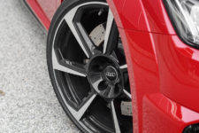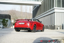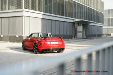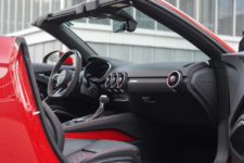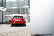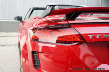Tout cela est plus exacerbé sur cette mouture RS, il faut bien assurer la réputation du badge Audi Sport. Petite parenthèse, ce dernier a fêté ses 25 ans en fin d’année dernière. Un brin de nostalgie en pensant au démoniaque break RS 2 qui l’avait inauguré en 1994. Revenons à notre TT-RS Roadster en détaillant ses spécificités esthétiques.