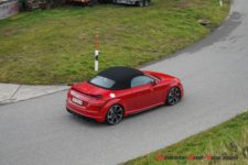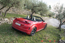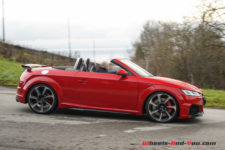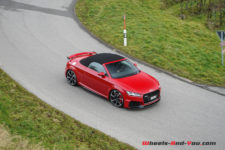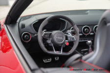 Le 0-100 km/h est atteint en 3.9 secondes alors que la vitesse maximum est bridée à 250 km/h. Toutefois, en option, il est possible de modifier ceci pour atteindre 280 km/h. Notre voiture d’essai dispose de cette spécification, mais vous comprendrez que pour la pérennité de mon précieux permis de conduire, je ne vérifie pas. Par ailleurs, je ne suis pas convaincu d’une telle option quand on voit qu’elle est facturée presque CHF 2’000.-, sauf bien sur si vous comptez écumer les circuits de la planète avec votre TT-RS.