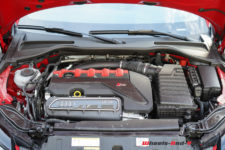 Pièce maitresse de cette TT-RS, son fabuleux 5 cylindres turbo qui développe 400 ch pour un couple de 480 Nm. A noter que ce 2.5 TFSI a remporté déjà neuf titres « International Engine of the Year ». A mes yeux, enfin surtout mes oreilles, c’est principalement sa sonorité spécifique qui lui donne tout son charme, ça ronronne parfaitement bien.