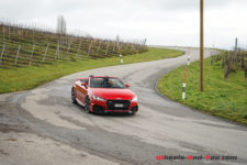 J’en entends déjà crier au scandale, mais j’assume et surtout je m’explique. En fait, et je vais rentrer dans les détails juste après, je ne peux objectivement rien reprocher à cette TT-RS. La finition est excellente, sa motorisation plus que suffisante, la qualité perçue sans véritable défaut, le comportement routier est exemplaire et on peut continuer ainsi à énumérer les atouts de l’auto. Mais pour moi, il lui manque le plus important : une âme ! Certes, de nos jours, c’est de plus en plus fréquent avec les voitures modernes, mais je trouve que pour une mouture Audi Sport, ça ne devrait pas être le cas ! Lâchez-vous Messieurs les ingénieurs, c’est de toute façon un produit de niche, alors autant qu’il soit totalement exubérant ! Voilà, maintenant que c’est dit et que potentiellement tous les passionné(e)s de la marque sont prêts à me lyncher sur la place publique, je vais vous détailler la conduite de cette TT-RS.