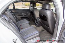 Les modifications distinctives de la mouture W12 S font dans la discrétion. La calandre est ici teintée en “noir gloss”, tout comme le diffuseur arrière. Tous les feux sont légèrement fumés et la belle se pare de jantes alliage 21 pouces et d’étriers de freins entièrement rouges ou noirs.