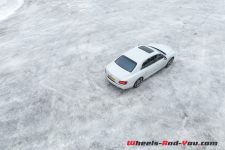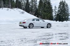 Si les connexions entre les épingles se font très vite, il demeure que les limites d’adhérence sont rapidement atteintes. Avec allègrement 2’600 kg à mouvoir et des pneus hiver en guise de chausses, je ne suis que très peu surpris. Arrivé sur les hauteurs, je repère un vaste parking, dont la grandeur a découragé le plus valeureux homme à déneiger. Alléluia ! C’est une occasion en or de défier la transmission intégrale et l’électronique embarquée. Sitôt les gommes posées sur les flocons, je sens les aides s’activer, non sans un certain vacarme. La motricité est alors excellente et je prends plaisir à marquer le manteau blanc de mes empreintes rainurées. Dans mon très grand sérieux d’essayeur, je me décide à désactiver les assistances, afin de noter la différence. Et le constat est immédiat : ça patine, ça glisse, ça dérape. Le comportement de l’auto change du tout au tout, et je m’aperçois alors combien le W12 pèse sur l’avant. Soit alors, je réenclenche l’électronique.
