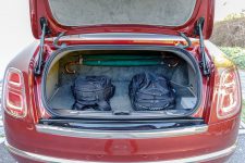 Par exemple, je trouve dommage de ne pouvoir ouvrir le toit qu’en imposte et pas sur sa longueur. Quid de sortir par le toit pour savourer du champagne ? Que dire du coffre avec ses 443 litres ? Voilà probablement le plus petit volume disponible au monde proportionnellement à la taille de la voiture. Mais je rassure tout le monde, il contient, au travers de l’option “Premier Specification” à EUR 4’190.-, deux grands et beaux parapluies ! Et puis il y a aussi cette démultiplication du volant que je trouve exagérée pour une voiture d’aujourd’hui, sans parler qu’à l’arrêt, cette direction s’avère un peu dure pour manœuvrer, un comble. Last but not least, Car Play d’Apple n’est pas supporté, alors que l’infotainment provient clairement de VW. C’est mesquin.