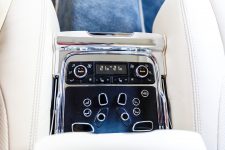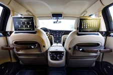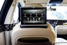 L’autre élément grisant, ce sont les tablettes Android « cachées » dans les sièges avant et qui sortent sur simple pression d’un bouton pour les passagers assis à l’arrière. Chaque tablette est détachable et peut se manipuler via un trackpad rangé au-dessus du mini-bar. Le détail paraît cocasse, mais, vu la distance entre l’écran et le passager, ce n’est pas bête du tout, même si ces tablettes Android sont proposées au prix extravagant de EUR 15’635.-. Ceci dit, l’intégration est parfaite et cette option inclut le système audio Naim d’une puissance de 2’200 W au travers de 20 haut-parleurs. Et puis si c’est la guerre pour les deux passagers au niveau du film ou de la source audio à écouter, chacun dispose d’un casque son avec son propre canal pour écouter ce qu’il veut.