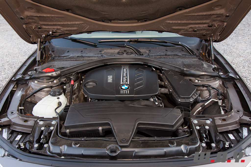 Ce bloc adopte le système « TwinPower Turbo », qui contrairement à ce que pourrait laisser supposer son nom, se contente d’une seule turbine mais à géométrie variable et conduits dédoublés («Twinscroll»), à laquelle sont associés l’injection directe à rampe commune ainsi qu’un vilebrequin réalisé en alliage d’aluminium et magnésium. Souplesse et puissance sont garanties sur toute la plage d’utilisation. Alors certes, ce « quatre pattes » se montre particulièrement rugueux, claquant à froid, n’offre pas une sonorité envoûtante ni l’allonge d’un six cylindres. En plus, le système « start-stop » finit par taper sur les nerfs en conduite urbaine avec ses démarrages brusques et bruyants. Mais aidé par la merveilleuse boîte automatique à huit rapports que nous avions découvert sur la 523i il y a quelques mois, je dois bien avouer que le mariage de ce moteur et cette boîte automatique est quasi idyllique. Cette transmission demeure à mon sens une référence en la matière, faisant preuve d’une grande douceur en conduite normale tout en s’acquittant de sa tâche avec célérité en conduite dynamique. Ne manque finalement que les palettes au volant pour s’amuser dans les cols…