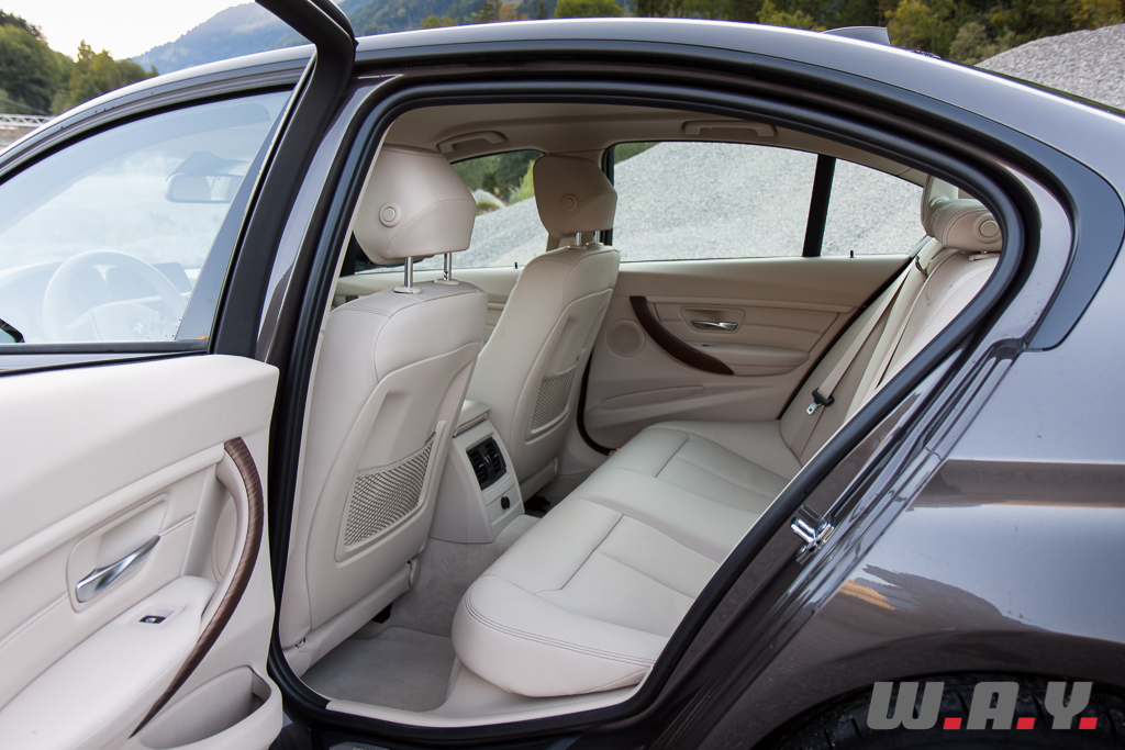 En termes d’habitabilité, BMW a consenti un sérieux effort. Sur les 93 millimètres d’accroissement de l’empattement, 15 mm profitent directement aux passagers arrière. Certes ça ne fait pas de notre 320d une limousine d’apparat, mais cela permet à deux adultes de prendre place aisément, faisant immédiatement taire les lancinantes critiques à l’encontre de la Série 3 sur ce point.