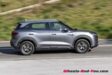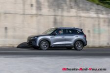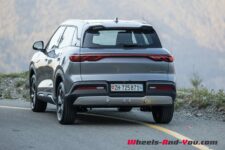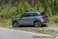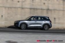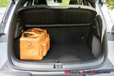 Le dessin est classique : un capot avant plat, un toit légèrement plongeant vers l’arrière. Sans fioriture à signaler, il est passe-partout. Le hayon arrière est pratiquement vertical, matérialisant l’aspect pratique de cette voiture. Les feux arrière sont reliés par une bande lumineuse devenue commune sur les véhicules récents. Les jantes alliage de 17 pouces, montées de pneus Hankook, cachent des freins à disque de petite dimension.