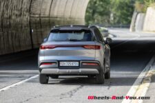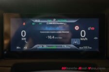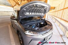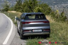 Mon expérience pour recharger sur superchargeur (DC) n’est pas concluante. Je rencontre plusieurs problèmes manifestement liés à la voiture qui refuse de libérer le courant de charge. Sinon, la puissance de recharge sous une tension de 400V est vraiment moyenne, on ne dépasse pas les 65 kW annoncés. Dans ces conditions, la recharge de la batterie de 17% à 100% a pris tout juste 1 heure. Je n’ai par contre rencontré aucun problème sur une borne domestique AC de 11 kW. Sur l’ensemble de l’essai, la consommation moyenne mesurée a été de 16.0 kWh/100 km, en prenant en compte une escapade en montagne avec de forts dénivelés. Cela correspond à une autonomie théorique totale de 265 km.