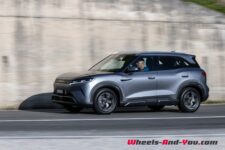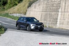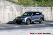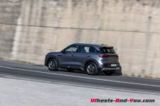 La mise en marche par bouton on-off et la manipulation du levier de vitesse est tout à fait conventionnelle et rassure dès les premiers mètres. Je suis en mode Eco et le démarrage est plutôt poussif, ce que je corrige en passant en mode Normal. En accélérant à fond dans les virages serrés, on n’a plus de doute : c’est bien une traction, avec des réactions au volant et un train avant ayant du mal à passer au sol le couple pourtant raisonnable.