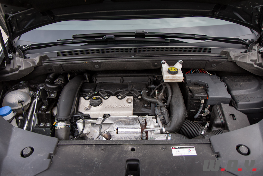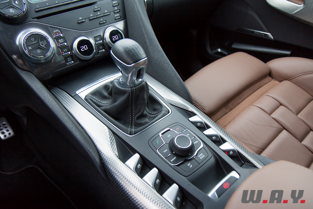 Vous allez rire, ça fait depuis le début de mon article que je vous parle de haut de gamme et un fois le capot avant soulevé, vous êtes face à un petit quatre cylindres 1.6 l. ! Oui oui vous avez bien lu, le moteur qui permet à cette DS5 de se mouvoir est d’une cylindrée de précisément 1598 cm3 et ne dispose que de quatre cylindres auxquels un turbocompresseur a été greffé. Il développe la puissance de 200 CV à 5’800 t/min pour un couple de 275 Nm dès 1’700 t/min. C’est en fait le même qui équipe la Citroën DS3 Racing et la Peugeot RCZ. D’ailleurs lors de ces deux essais, j’avais été conquis par cette motorisation qui correspondait parfaitement tant au côté sportif de la petite bombe aux doubles chevrons qu’au côté coupé grand tourisme de la petite lionne de Sochaux. Mais dans le cas de la DS5, je suis en présence d’une grande voiture visant plutôt le confort et le luxe avant la sportivité. Du coup je rêvais d’un gros V6, voire d’un V8, quitte à ce qu’il soit diesel s’il faut vraiment garder une image politiquement correcte. Quoi que… Vous ne m’en voudrez pas non plus d’imaginer, sous les traits d’une DS5, une version moderne de la mythique Citroën SM, à l’époque motorisée par un V6 Maserati, mais qui opterait cette fois pour le V8 Corvette, du fait du récent partenariat avec GM et qui balancerait toute sa puissance sur les roues arrière exclusivement, bien évidemment. Bon très bien, j’arrête de délirer et je reviens à ma voiture d’essai, la DS5 1.6 THP 200. Même constat de surprise pour la transmission, le type de voiture correspondrait plus à une boîte automatique, mais il s’agit bien de la boîte manuelle six rapports comme sur la DS4 essayée à l’automne dernier par mon collègue qui était aussi équipé du quatre cylindres 1.6 turbo de 200 CV. D’ailleurs la définition exacte du modèle, 1.6 THP 200, est la même pour les deux voitures et les caractéristiques techniques identiques en tous points. Mais encore une fois, la petite sœur de la DS5 a une taille et une image qui est plus en adéquation avec ce moteur. Si les premières impressions étaient en relation avec le choc de la découverte d’une si petite motorisation, je reconnais qu’après plus de 2’000 km en compagnie de cette DS5, mon avis final en est tout autre. Rageur et performant, le quatre cylindres turbo répond totalement aux besoin de la voiture. S’il sait se montrer relativement discret sur autoroute, il peut aussi dévoiler son côté piquant une fois les petites routes atteintes. Les montées en régime sont franches, les reprises correctes même dans les rapports supérieurs, la sonorité sympathique en conduite soutenue. Du coup je me suis surpris à attaquer fort malgré l’encombrement de la voiture et son image cossue. Niveau consommation le choix du petit moteur amène tout son sens. Le constructeur nous annonce une valeur mixte de 6.7 l./100km et sur la totalité de mon essai, j’ai calculé une consommation moyenne de 8.1 l./100km tout en sachant que je n’ai pas hésité à solliciter cette DS5. C’est un résultat très correct pour une voiture de la taille de la DS5 et sur un trajet exclusivement autoroutier, il est facile d’abaisser cette moyenne d’un litre, voire plus. D’autre part, la Citroën DS5 est disponible avec d’autres motorisations, un essence plus modeste (156 CV) et deux diesel (112 CV et 163 CV), mais il existe surtout une version Hybrid4 (200 CV) équipée d’un diesel couplé à un moteur électrique, le tout avec une transmission intégrale, que Wheels And You vous proposera prochainement à l’essai.
