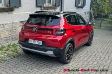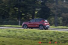 Je regrette cependant que cette impression de confort ne soit pas plus généralisée à bord de la ë-C3. A basse vitesse, l’amortissement laisse à désirer et les essieux transmettent les aspérités de la chaussée et les plaques d’égout, avec un retour à la terre ferme assez brusque si l’on franchit un dos d’âne trop rapidement, lié au choix de Citroën d’un réglage minimal en détente. La voiture utilise la même technologie de butées de suspension hydrauliques que les modèles plus imposants du constructeur. Elle est donc équipée de ressorts et d’amortisseurs plus souples, s’appuyant sur les butées hydrauliques pour absorber les chocs importants. Cependant, à vitesse élevée notamment, cette approche n’est pas toujours efficace. On ressent par exemple des chocs plus secs au niveau des fesses ; tandis que d’autres chocs peuvent provoquer des rebonds et un léger balancement de la carrosserie. Charmant certes mais pas objectivement recommandable.