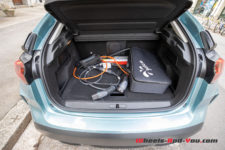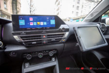 Au-delà de ce stress, la marque offre une voiture munie de quelques gadgets bienvenus comme cet étui à tablette accroché sur le tableau de bord côté passager. Les prises USB/USB-C ainsi qu’un chargeur sans fil sont aussi là pour nourrir nos compagnons électroniques. Enfin, un coffre facilement accessible est muni d’une trappe pour ranger ce maudit câble qui ne s’enroule jamais comme souhaité. A quand un constructeur qui mettra un enrouleur intégré au coffre ou depuis la trappe à essence ?