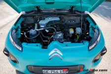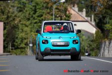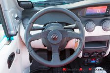 La partie propulsion de cette Citroën semble toute petite dans cette grande baie moteur. La pièce centrale est un moteur à aimants permanents de 68 ch et 140 Nm de couple accolé à une boite automatique. L’énergie nécessaire provient du bloc batterie Li-polymère de 30 kWh caché dans le planché. L’autonomie annoncée (selon un protocole de test discutable, nous sommes d’accord) est de 200 km en trajet urbain et de 100 km en extra-urbain. En vitesse maximum, vous pouvez espérer atteindre les 100 km/h au prix de nombreux pourcents de charge.