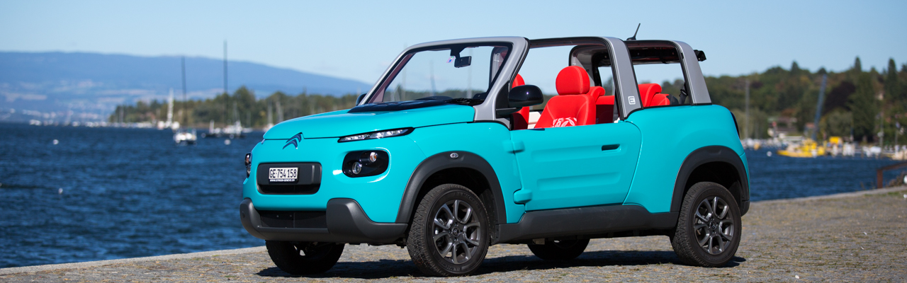 Nos remerciements au PSA Groupe pour le prêt de cette Citroën E-Mehari, ainsi qu’à la succursale Citroën Genève aux Acacias pour la logistique.