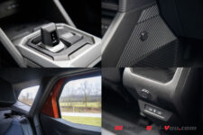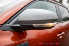 Les boucliers gris clair proéminents donnent une impression de solidité. Tout le bas de caisse, en gris plus sombre, est en “Starkle”, un matériau reconnaissable à son aspect moucheté, issu à 20% de plastiques recyclés et teinté dans la masse, ce qui rend les éraflures moins visibles. Le dessin des ailes contribue à donner de la prestance à la voiture sur la route. Le galbe qui commence au milieu de la porte arrière et la poignée qui se cache dans le pilier C sont marquants.