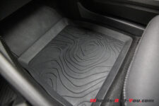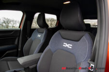 Avec ce modèle, Dacia intronise un design de relief topographique qui inspire de nombreux éléments dispersés dans la voiture. Dès qu’on s’installe à bord, l’écran 10” engage une animation en traits blancs pour faire apparaître l’inscription Dacia. Ce même motif se retrouve dans les tapis de sol en caoutchouc, esthétiques mais qui offrent trop peu de grip ! Mon talon a tendance à glisser dessus.