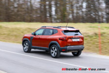 Ce Duster fait plus petit en vrai qu’en photo. 1.66 m, ce n’est pas très haut pour un SUV. Là aussi, il suit la tendance, avec des traits séduisants sans adopter des dimensions trop importantes. Pour avoir plus grand, Dacia vous invite à regarder le grand frère, le Bigster dont nous espérons vous proposer un essai complet prochainement.